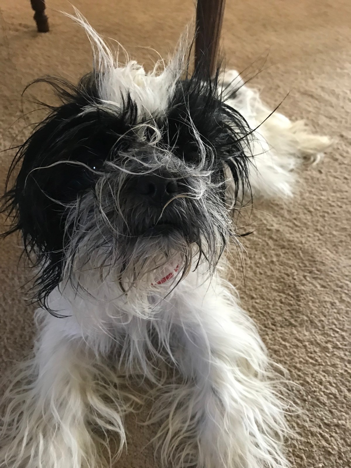She was fine at first, but then it began to rain. So I turned on the windshield wipers and that was the beginning of the end. Apparently, windshield wipers are terrifying, because every time they wiped, she clawed her way further and further up my shirt until she was over my shoulder. The only part of her I had a grip on was her back hips. She dug in to my flesh with her tiny razor sharp claws and I ran off the road. If any of you were on the road while this was occurring, I apologize. I wasn’t drinking. Just bleeding.